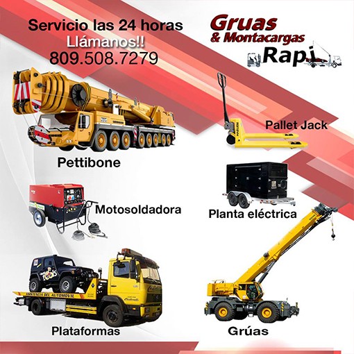 Ofrecemos servicios de grúas, vehículos pesados, plantas eléctricas y montacargas para empresas a Santo Domingo y el interior del país.